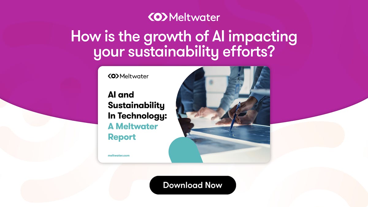 We used the Meltwater Suite to dive into a year’s worth of online and social media conversations to highlight which topics are getting the most attention with regard to AI within the technology landscape as well as the meeting point between AI and sustainability.